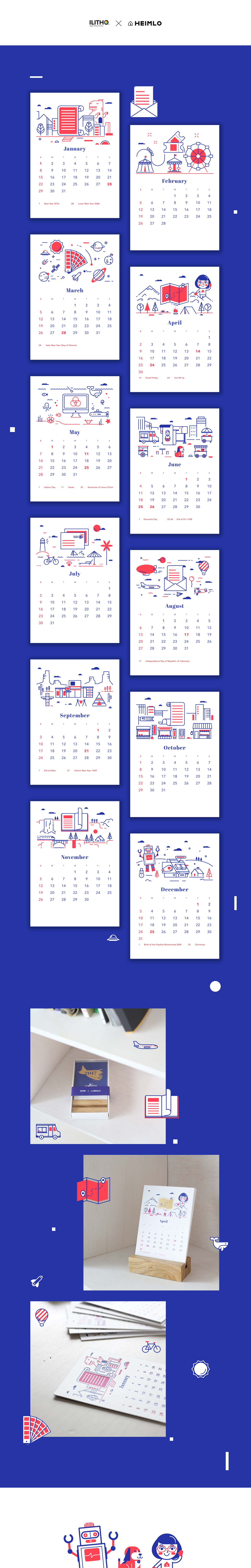 HEIMLO collaborated with ILITHO - a Jakarta based printing company, making a 2017 calendar. We designed and illustrated, ILITHO did the printing and letterpress.